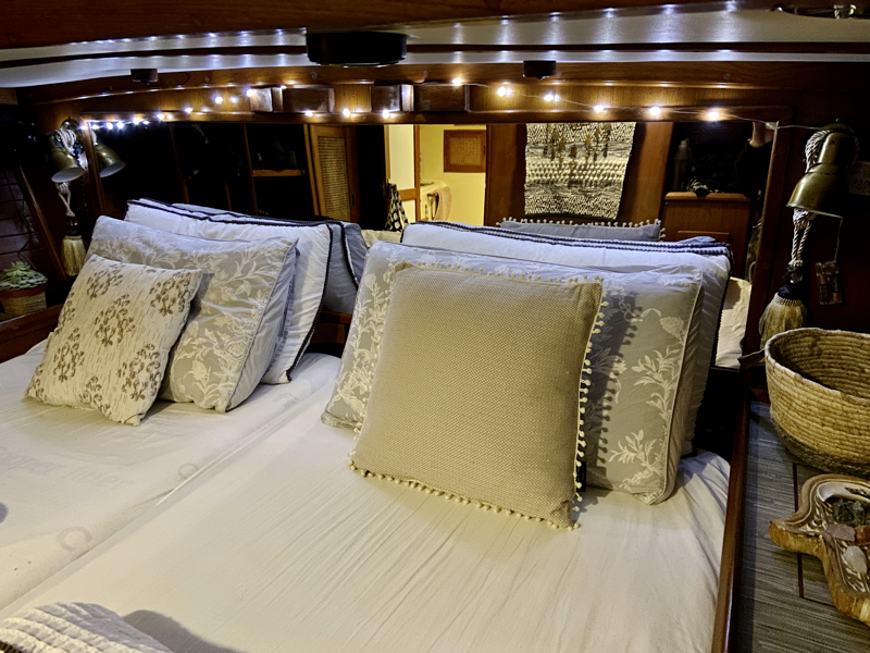 Thankfully we are on shore-power, so no problems running the heater, as well as our induction plate for cooking lots of soups, stews and curries in our favourite pot (which we’ve been dragging around the world with us for many years).